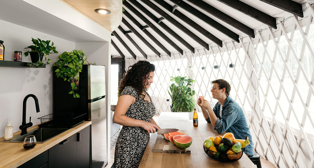 L'automne dernier, les deux hommes ont abandonné sa vie sur des roues pour vivre dans une yourte. En l'espace de six mois, avec sa petite amie, Nicole Lopez, il a conçu et construit une demeure dans la banlieue de Portland, dans l'Oregon, offrant un nombre surprenant de conforts que vous pourriez trouver dans une maison normale…