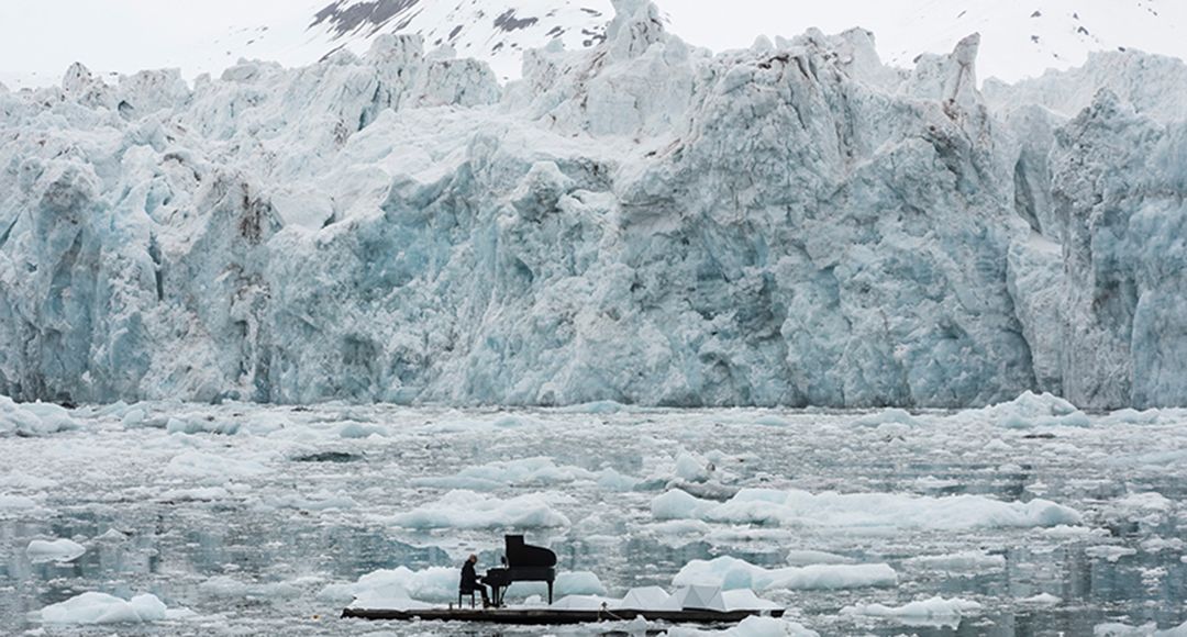 Ludovico Einaudi orchestrant performances flottantes dans l'océan Arctique pour Greenpeace.