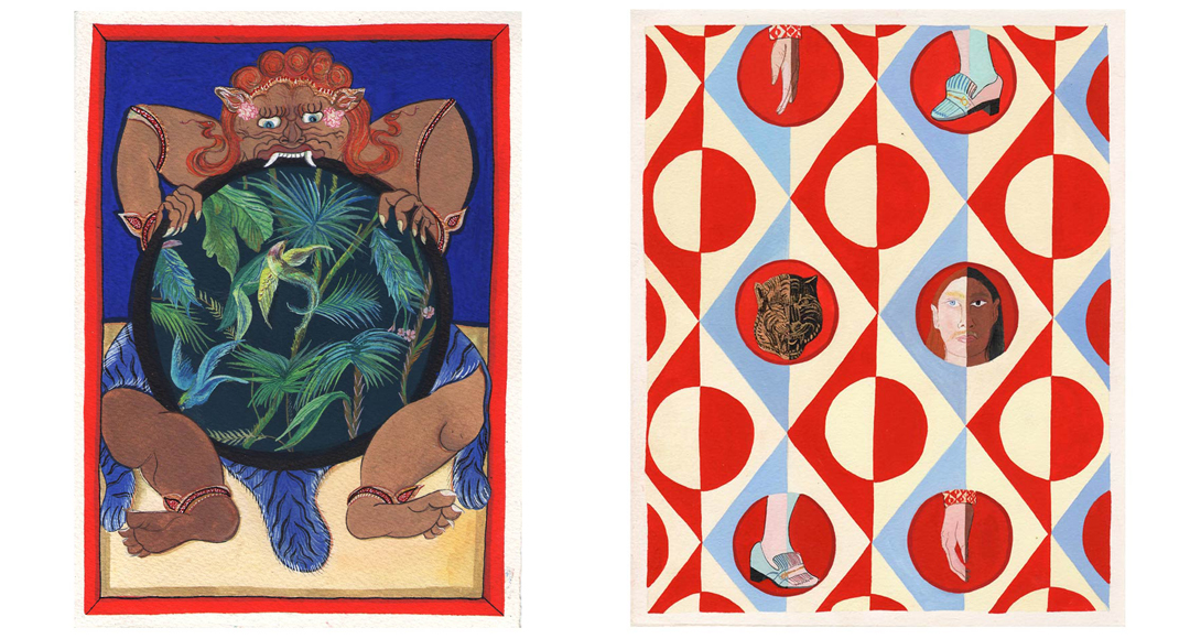A Droite: Slippery and Sweet (gouache sur papier) 2016